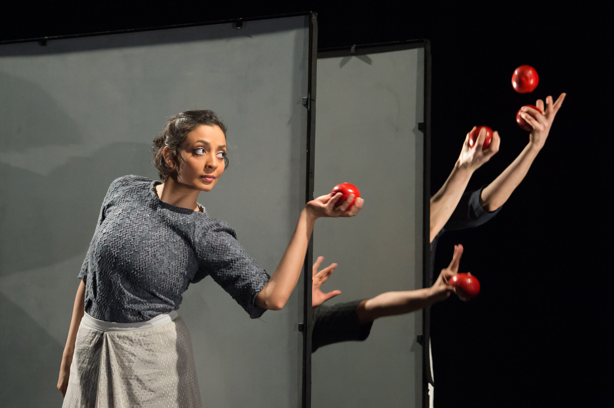 Sigma further explores these dialogues and showcases the multiplicity between Bharatanatyam dance, juggling and percussion. Developed in partnership with award winning choreographer Seeta Patel, the highly skilled cast (dancer Indu Panday and Kati Ylä-Hokkala & Kim Huynh – pioneering jugglers from Gandini Juggling), the work investigates classical Indian geometries, mathematics, and rhythm by looking at similarities and differences, processes and choreographic architectures. There is also a focus on the parabolic accelerating velocity of objects in the air versus the more subtly changing speeds of the dancer and the underlying Carnatic musical structures.